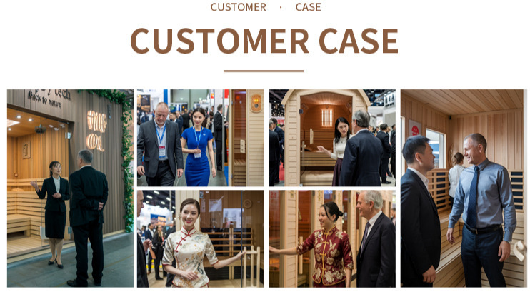 Aksesori Pemantauan dan Pengalaman: Pengukur suhu dan kelembapan yang sensitif, pengatur waktu pasir kayu (waktu + rasa ritual), ember dan sendok kayu yang dipoles dengan tangan, memulihkan rasa ritual sauna tradisional sambil memastikan kenyamanan penggunaanPintu kaca luar ruangan ruang uap luar ruangan.